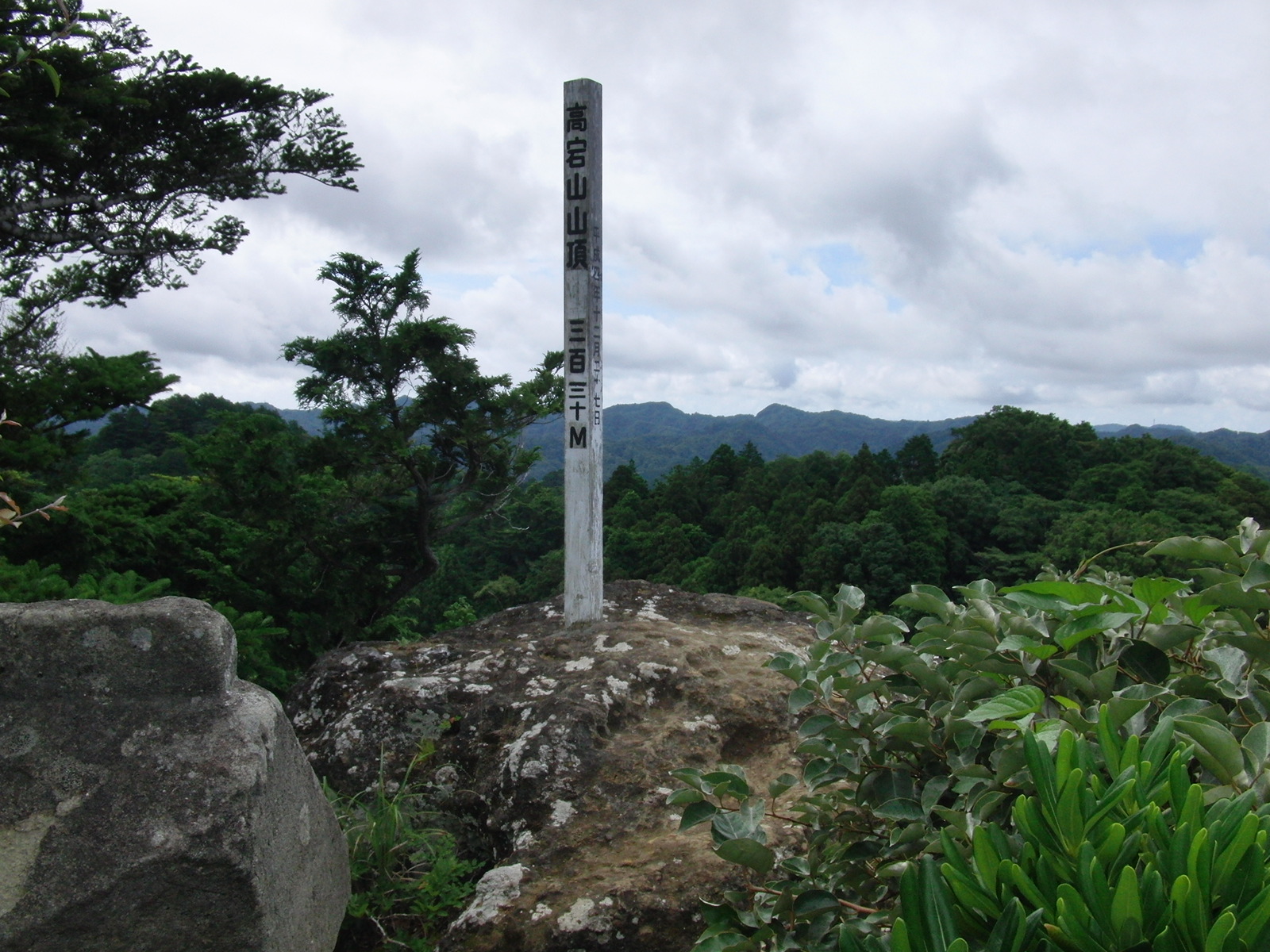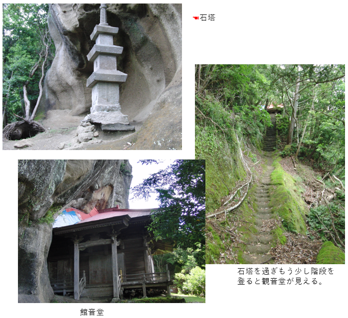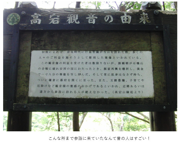高宕山は房総半島の中央部にある山で、一帯は野生のサルの生息地として知られています。高宕山へはバスの運行はないので通常、上総湊駅からタクシーを利用するか、自家用車で石射太郎登山口まで行きます。登山口から15分登ると尾根上の石射太郎山です。ここから高宕山まで起伏のある山稜を45分ほど歩き、階段を登ると、狛犬と2基の石造仁王像が迎えてくれます。さらに石段を登った所に巨岩の下に祀られている高宕観音があります。山頂はその先の岩の上で、高龗神(たかおかみのかみ)と鉄釜があります。干天にはここで雨乞いをしたと伝えられています。