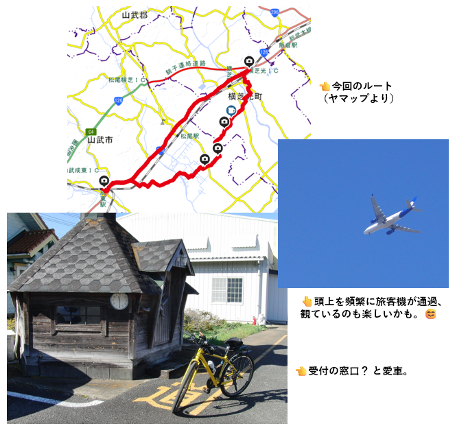 JR成東駅から酒蔵のある山武市松尾までは片道約9km、道中頭上を通過する飛行機を撮影したり、稲刈りを終えた田やネギ畑などのどかな風景を眺めながら約50分ほどで到着しました。今日は酒蔵の他に、米粉を使用してパンを作っている横芝光町のパン屋さんまで足を延ばしました。パン屋さんの情報はパン屋さん巡りにて紹介します。